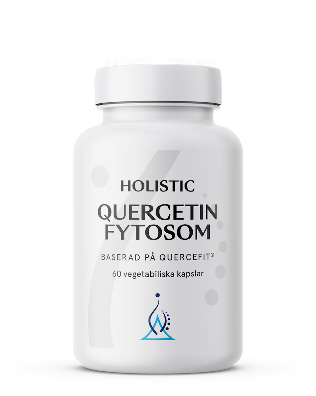 Quercetin är en flavonol vanlig i växter som bidrar till antioxidantförsvar. Fytosomformen ökar absorptionen och stabiliserar mastceller, vilket hjälper vid histaminrelaterade besvär