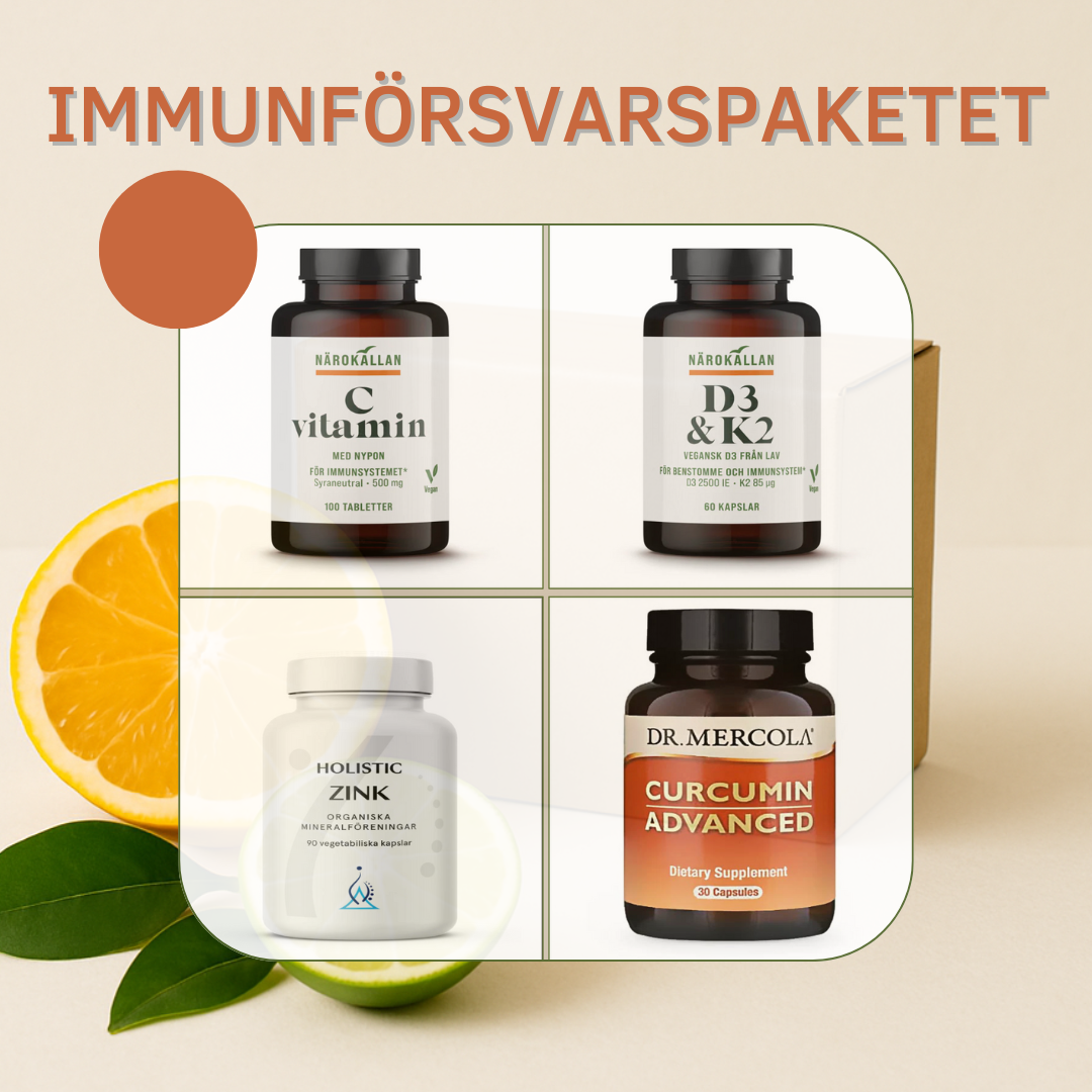 Detta paket erbjuder ett heltäckande stöd för att hålla ditt immunförsvar starkt och effektivt, särskilt i perioder av stress och förkylningstider.