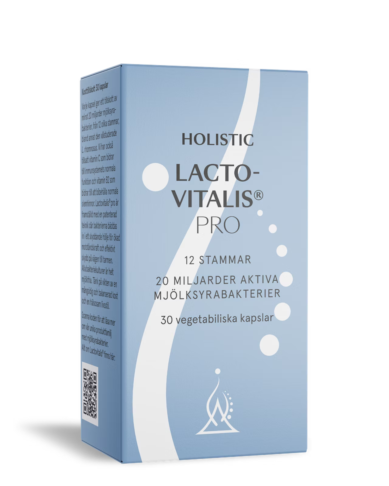 - Holistic Lactovitalis Pro – En probiotika med noggrant utvalda bakteriestammar som bidrar till att återställa balansen i tarmfloran och främja en långsiktigt god tarmhälsa.