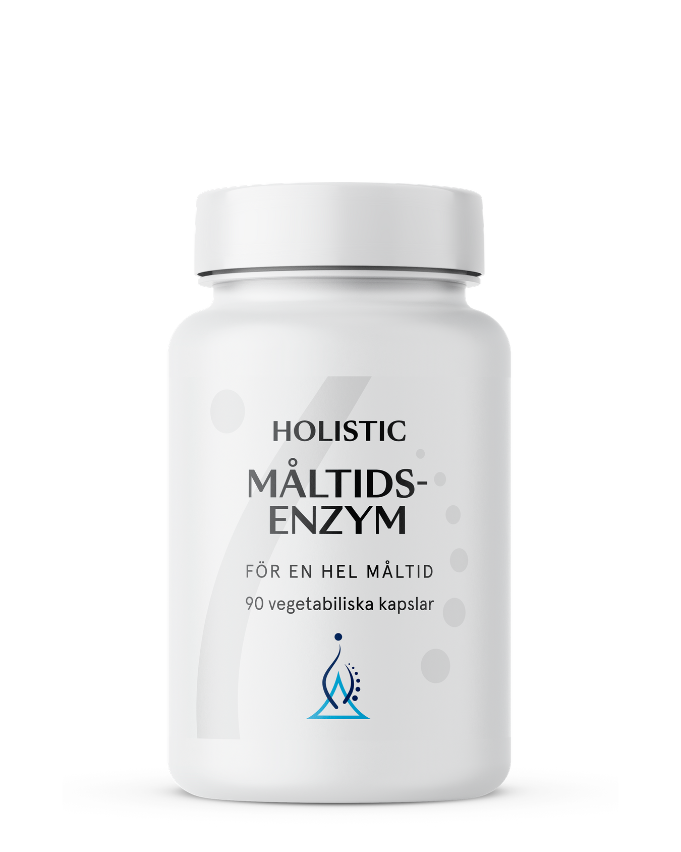 - Holistic Måltidsenzym (Digestive Enzymes) – Enzymer som hjälper till att bryta ner maten ordentligt och förhindrar att ofullständigt nedbruten mat gynnar bakteriell överväxt i tunntarmen.